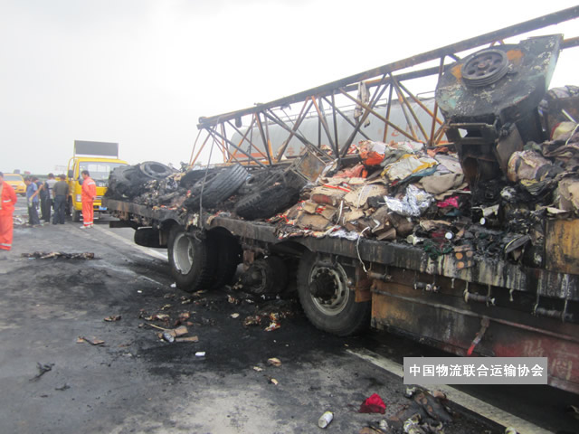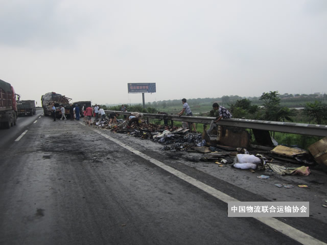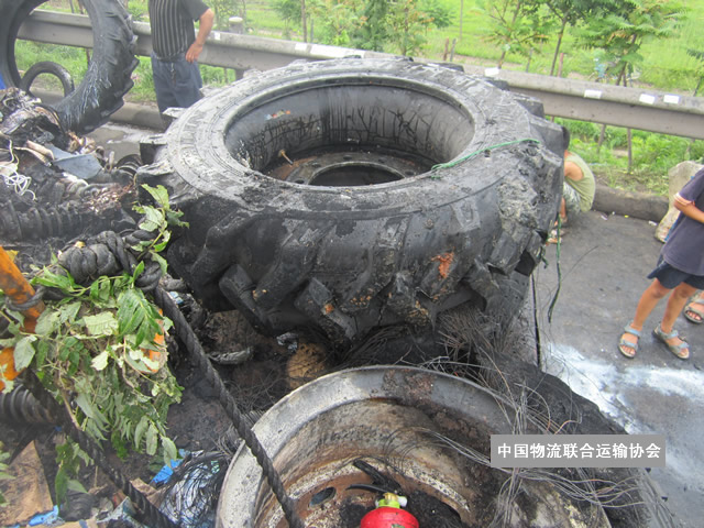 出险原因:标的车行驶中轮胎着火,造成货物损失。